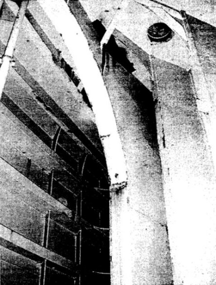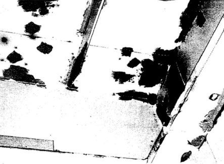 In the mid-section of the ballast tank, in the area of the boottop, rust scales can be relatively self-healing during the early service life of the coating. This is fortunate since the major source of coating breakdown is from reverse impact damage from tugs, fendering and floating debris. The impacts shown in photograph 7 have healed well. The corrosion rates in this area of the ballast tank are lower than those at the top or the bottom of the tank.